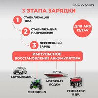Зарядное устройство работает полностью в автоматическом режиме. С его помощью можно зарядить батарею напряжением 12/24 В. Буферный режим позволяет оставлять устройство включенным после завершения заряда. Благодаря нескольким защитным функциям аккумулятор защищен от перегрева и закипания электролита.