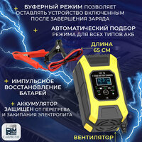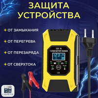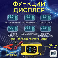 автоматическое отключение зарядки, встроенный амперметр, встроенный вольтметр, подходит для AGM/GEL аккумуляторов, тест состояния АКБ