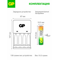 Зарядное устройство GP для аккумуляторных батареек АА и ААА на 4 слота, с аккумуляторами ААА 1000 mAh NiMH, набор 4 шт: сравнение цен, характеристики, фото, актуальное наличие и цены.