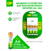 Зарядное устройство GP для аккумуляторных батареек АА и ААА на 4 слота, с аккумуляторами AA 2700 mAh NiMH, набор 4 шт: сравнение цен, характеристики, фото, актуальное наличие и цены.