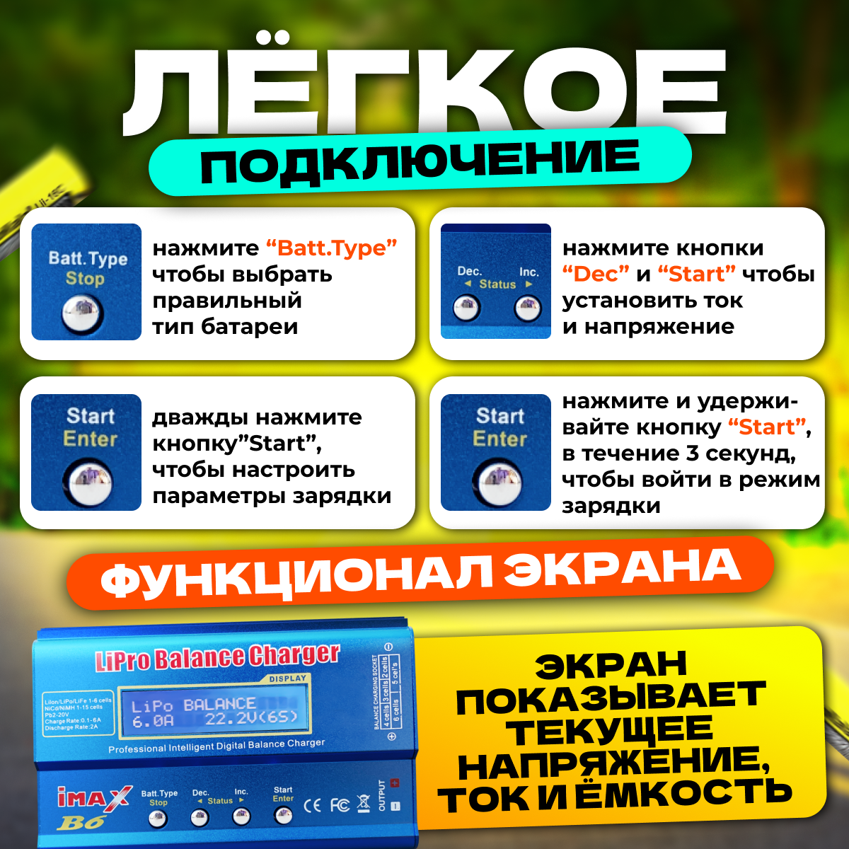 - Балансировочный заряд Li-ion, Li-pol, LiFe.