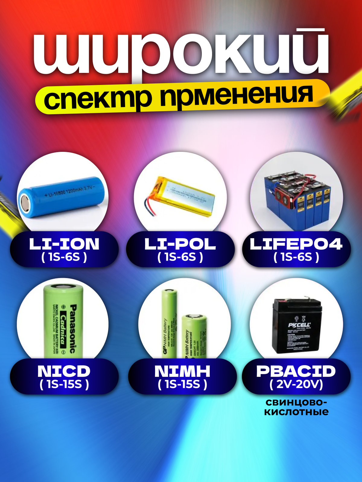 Универсальность: Imax B6 поддерживает зарядку аккумуляторов Li-Ion, LiPo, NiMH, NiCd, Pb (гелевые и свинцово-кислотные). Это делает его незаменимым аксессуаром для автовладельцев, страйкболистов и сервисных работников.