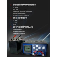 автоматическое отключение зарядки, встроенный амперметр, встроенный вольтметр, подходит для AGM/GEL аккумуляторов, тест состояния АКБ