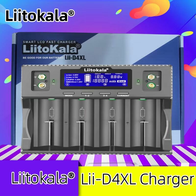 LiitoKala Lii-D4XL может заряжать только Цилиндрический литий-ионный аккумулятор (3,7 В, 3,8 В), NiMH/NiCd (1,2 В), литий-железо-фосфатный аккумулятор (3,2 В), он может определять тип батареи и автоматически заряжать ее при выбранном токе зарядки. Lii-D4XL имеет входной порт переменного тока. С ЖК-дисплеем вы можете четко прочитать процесс зарядки. Встроенная схема защиты позволяет заряжать аккумуляторы, не задумываясь о проблемах безопасности. Разработанный для портативности, гибкости и многофункциональности, LiitoKala Lii-D4XL-Ваш умный помощник, когда вы дома или в путешествии.