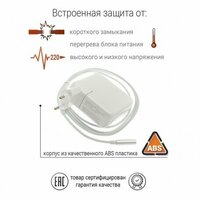 Корпус зарядного устройства выполнен из качественного пластика белого цвета, что придает ему стильный и современный вид.