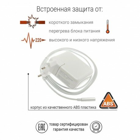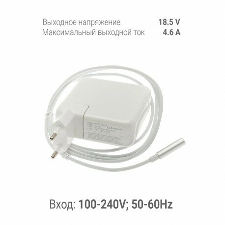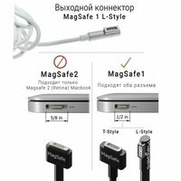 Зарядное устройство оснащено магнитным разъемом MagSafe, что обеспечивает надежное и быстрое подключение к вашему ноутбуку.