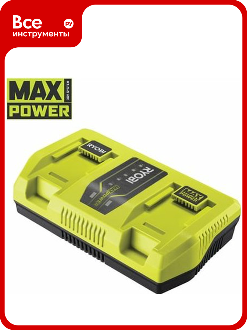Двухпортовое устройство Ryobi незаменимо, когда нужно быстро зарядить два аккумулятора. Совместимо с любым аккумулятором MAX POWER Светодиодный индикатор зарядного устройства информирует о состоянии аккумулятора и статусе процесса зарядки Вентилятор охлаждения позволяет зарядному устройству работать на максимальной мощности Одновременная зарядка двух аккумуляторов с силой тока 6А Крепление для подвешивания
