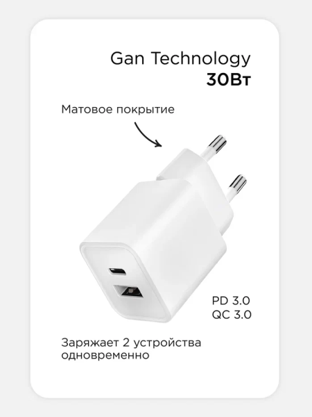 GaN, быстрая зарядка, защита от перегрева, защита от перенапряжения, кабель в комплекте, часы