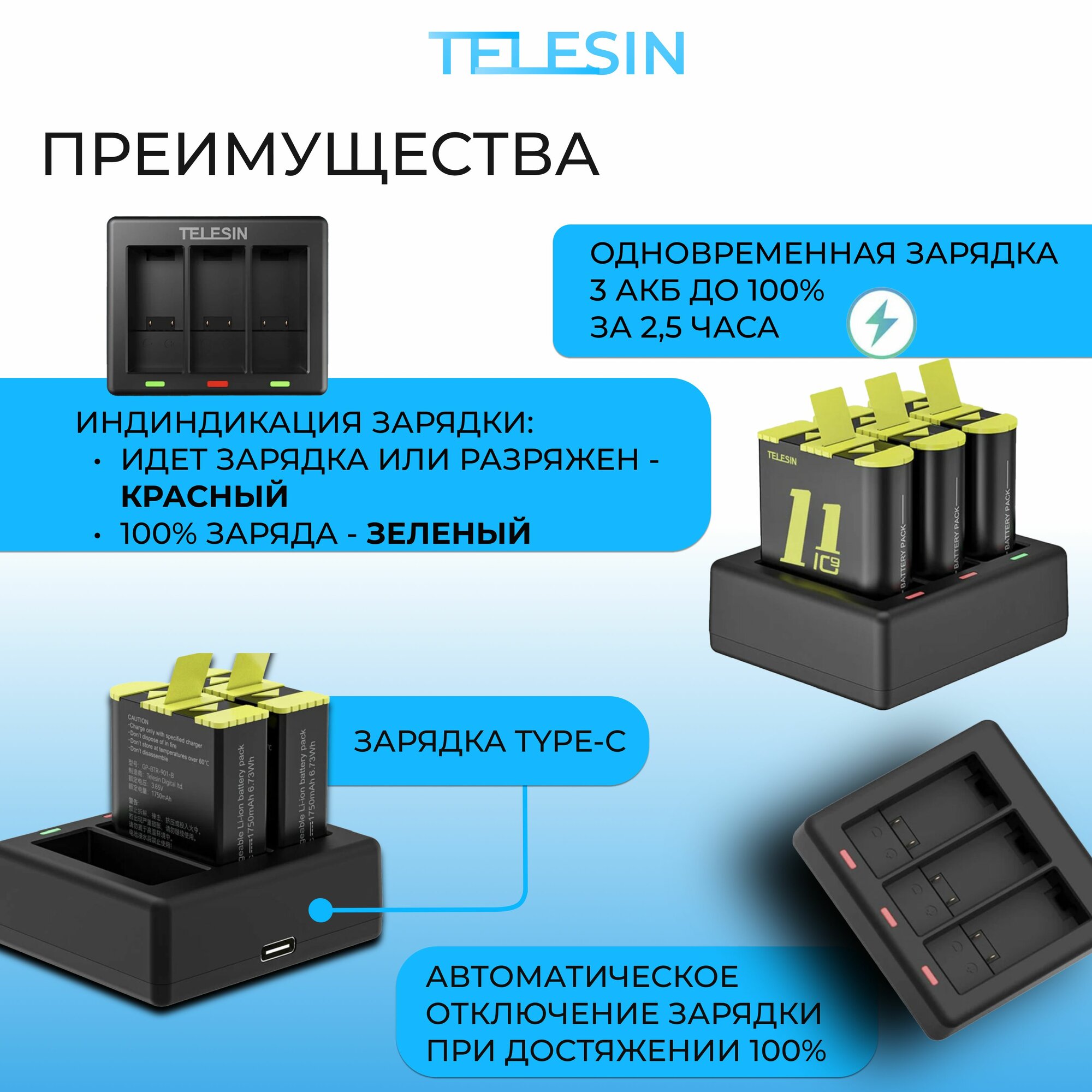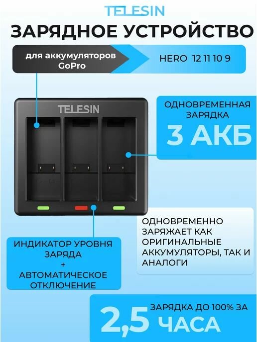 Купить Зарядное устройство Telesin на 3 АКБ GoPro 12 11 10 и 9 зарядка с доставкой по всей России. Зарядное устройство Telesin на 3 АКБ GoPro 12 11 10 и 9 зарядка: сравнение цен, характеристики, фото, актуальное наличие и цены.