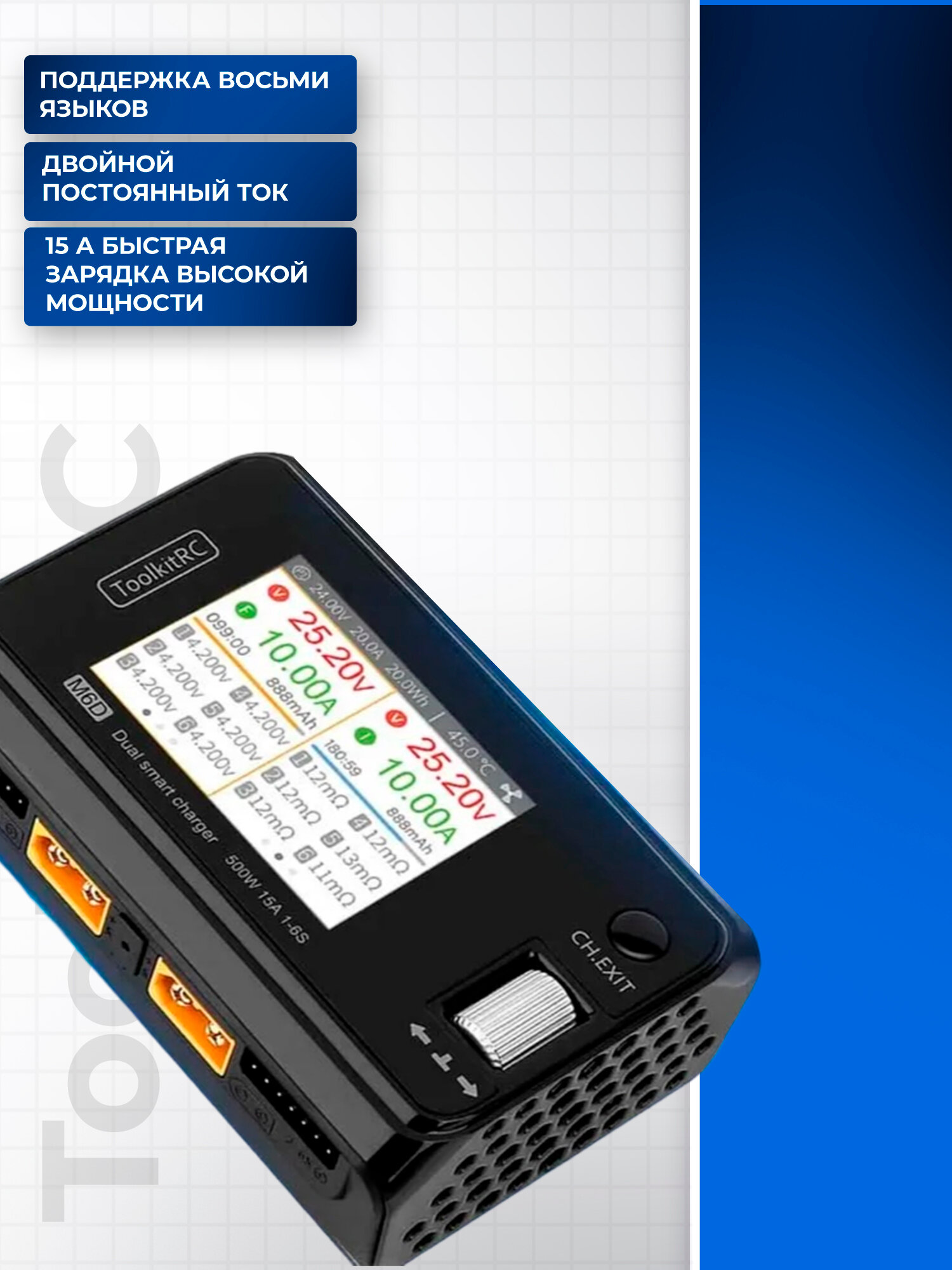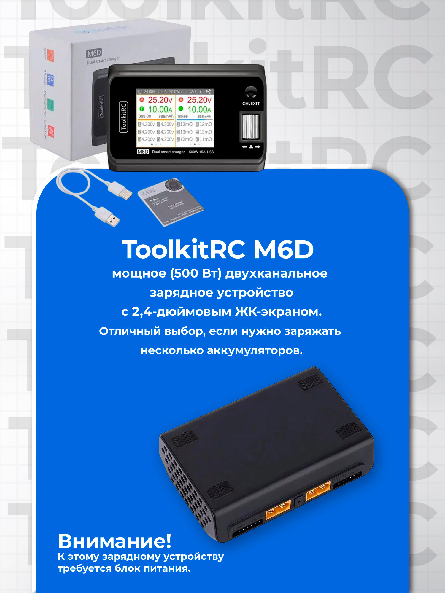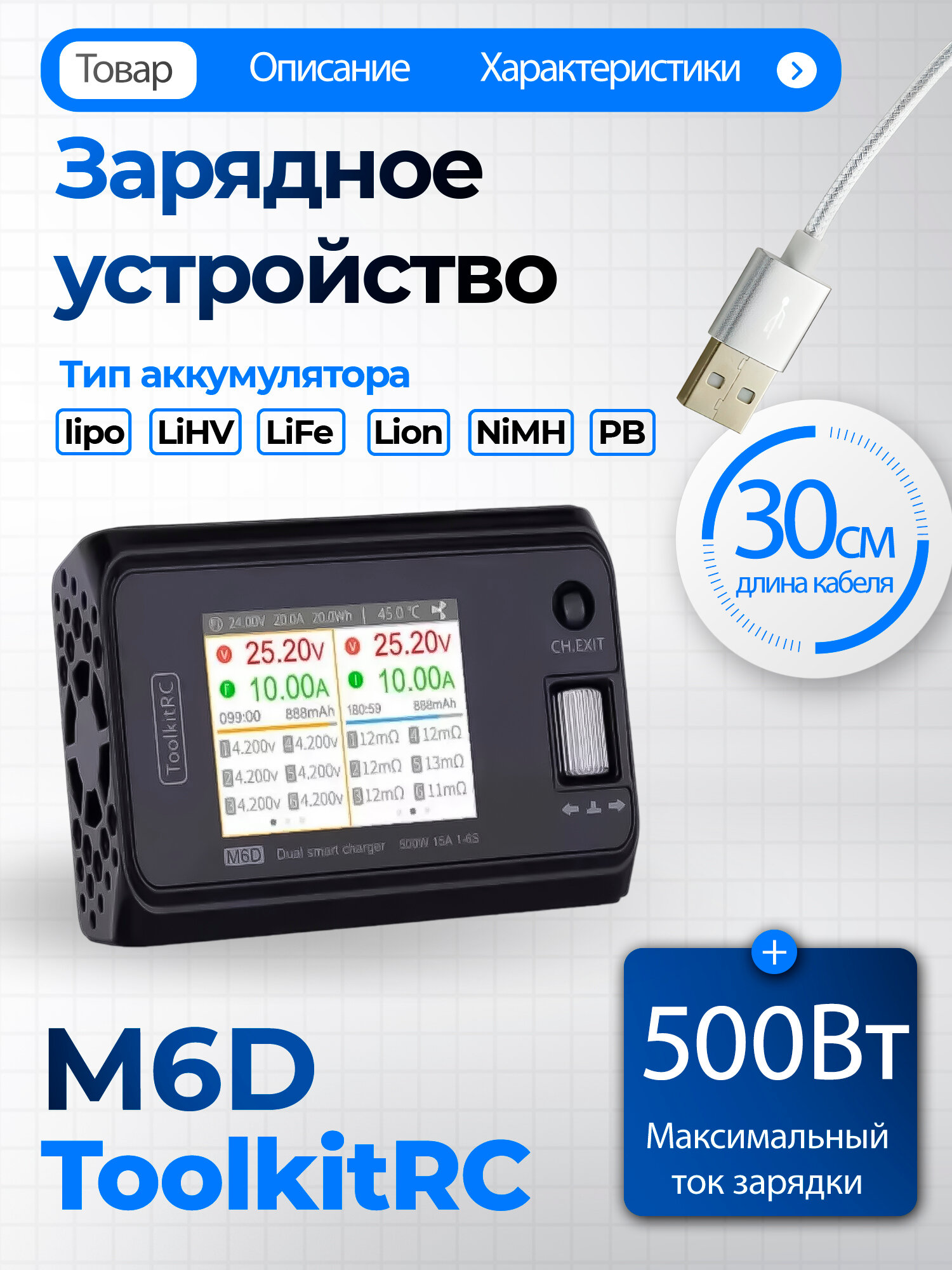 Купить ToolkitRC M6D, 500W 15A Двухканальное зарядное устройство для LiPo аккумуляторов с доставкой по всей России.