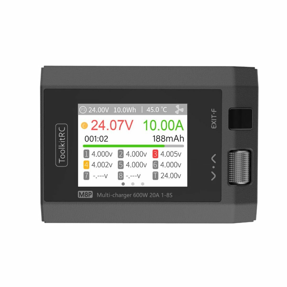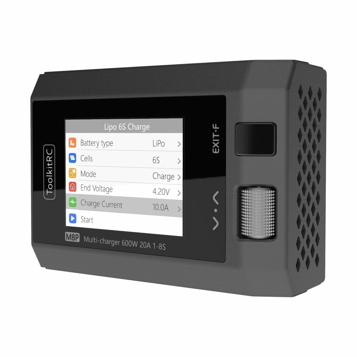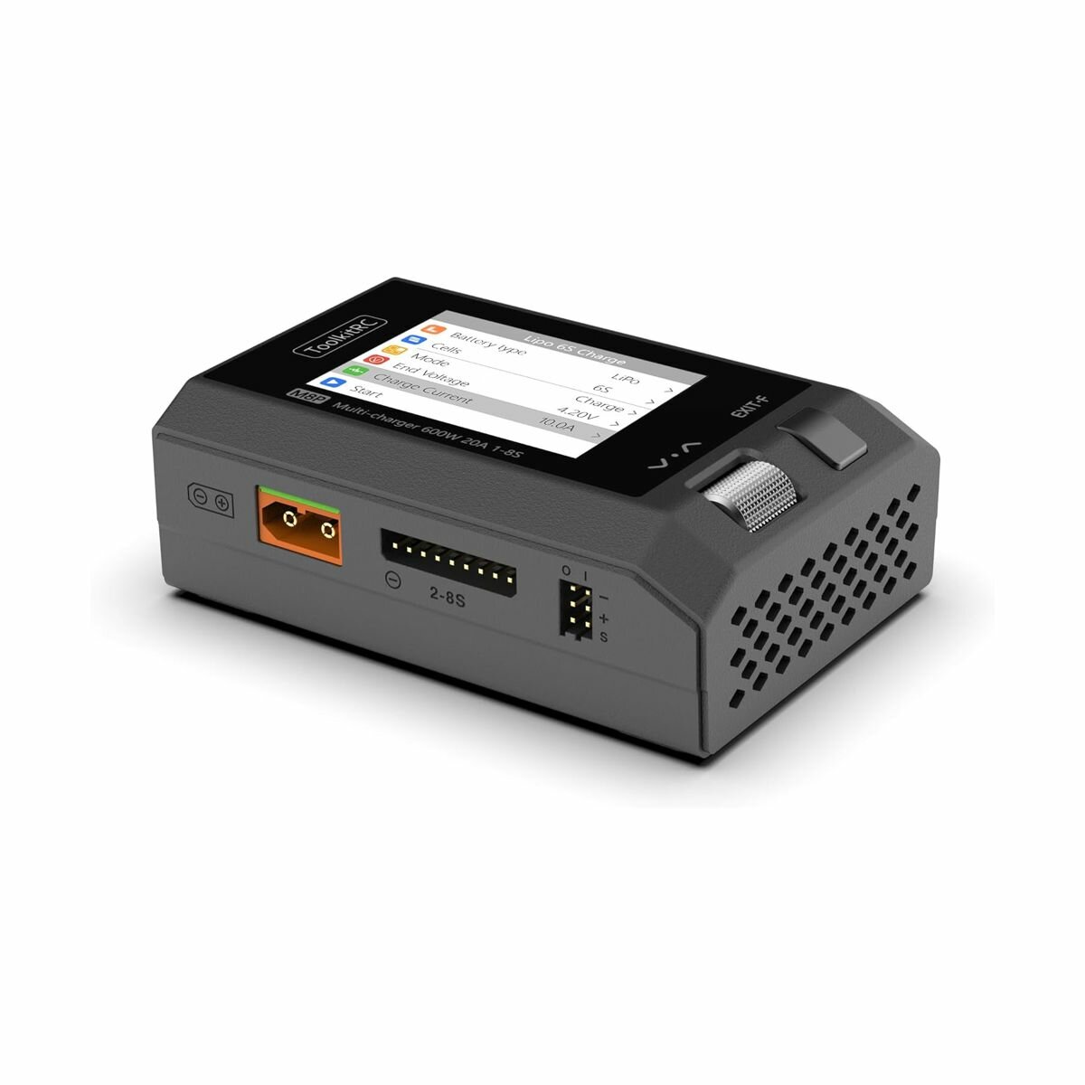 Зарядное устройство ToolkitRC M8P - это многофункциональный инструмент, объединяющий в себе такие функции, как зарядка с балансировкой, разрядка, устройство для измерения силы сигнала и может работать как источник сигнала. Компактное интеллектуальное устройство M8P работает от источника постоянного тока c напряжением DC 7-35В и способно заряжать, балансировать и разряжать 1-8S Lipo/LiHV/LiFe/Lion/LTO, 1-20S NiMh и 1-12S Pb аккумуляторы. Максимальная мощность ToolkitRC M8P составляет 600Вт, а ток зарядки до 20А. Вся важная информация отображается на сверх ярком IPS 2.4-дюймовом дисплее с широким углом обзора, что позволяет легко контролировать все процессы. Интуитивно понятный и простой интерфейс управляется при помощи скрола и всего одной кнопки.