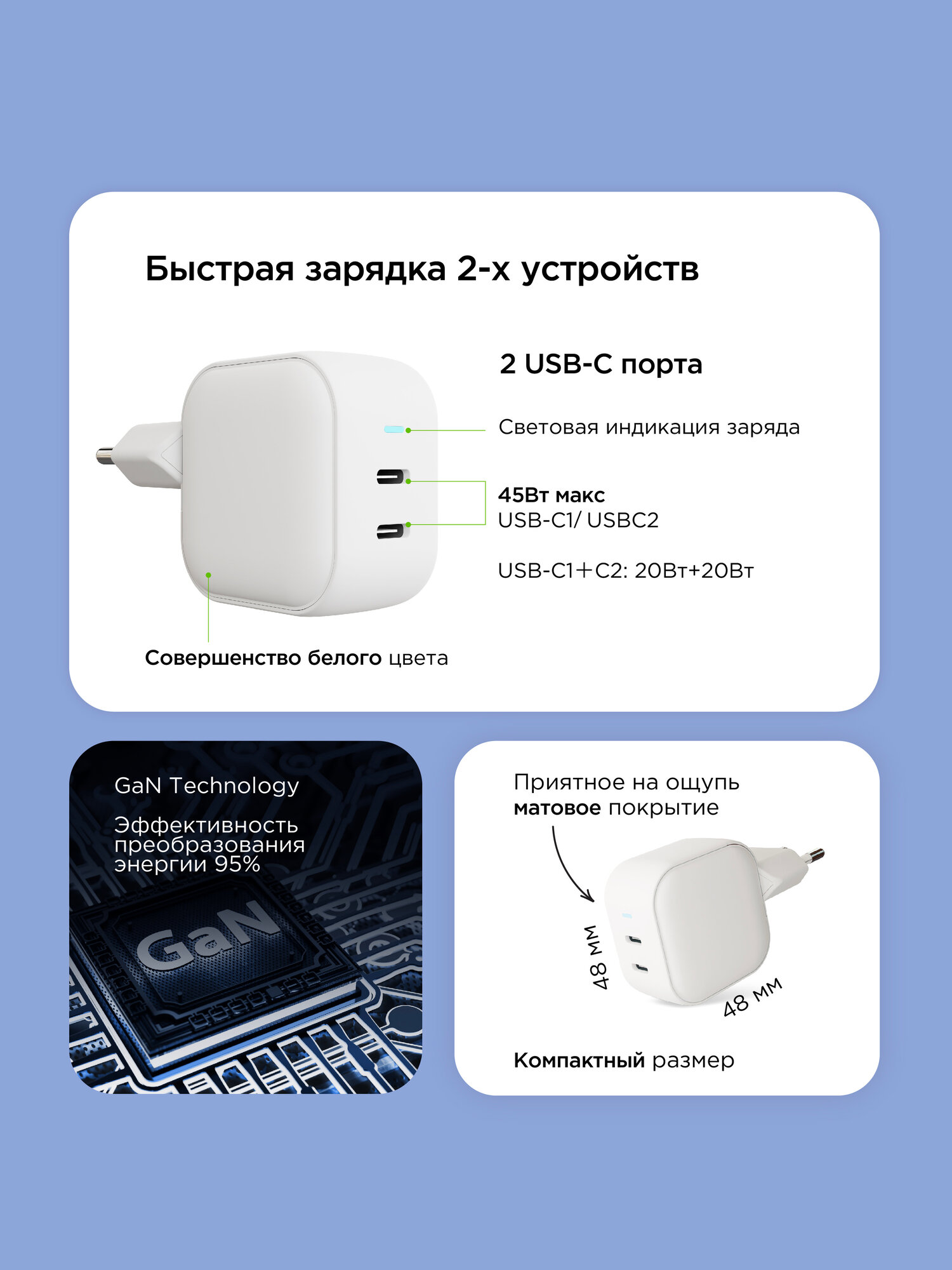 Зарядное устройство VLP с быстрой зарядкой G-Charge 45Вт USB-C+USB-С: сравнение цен, характеристики, фото, актуальное наличие и цены.