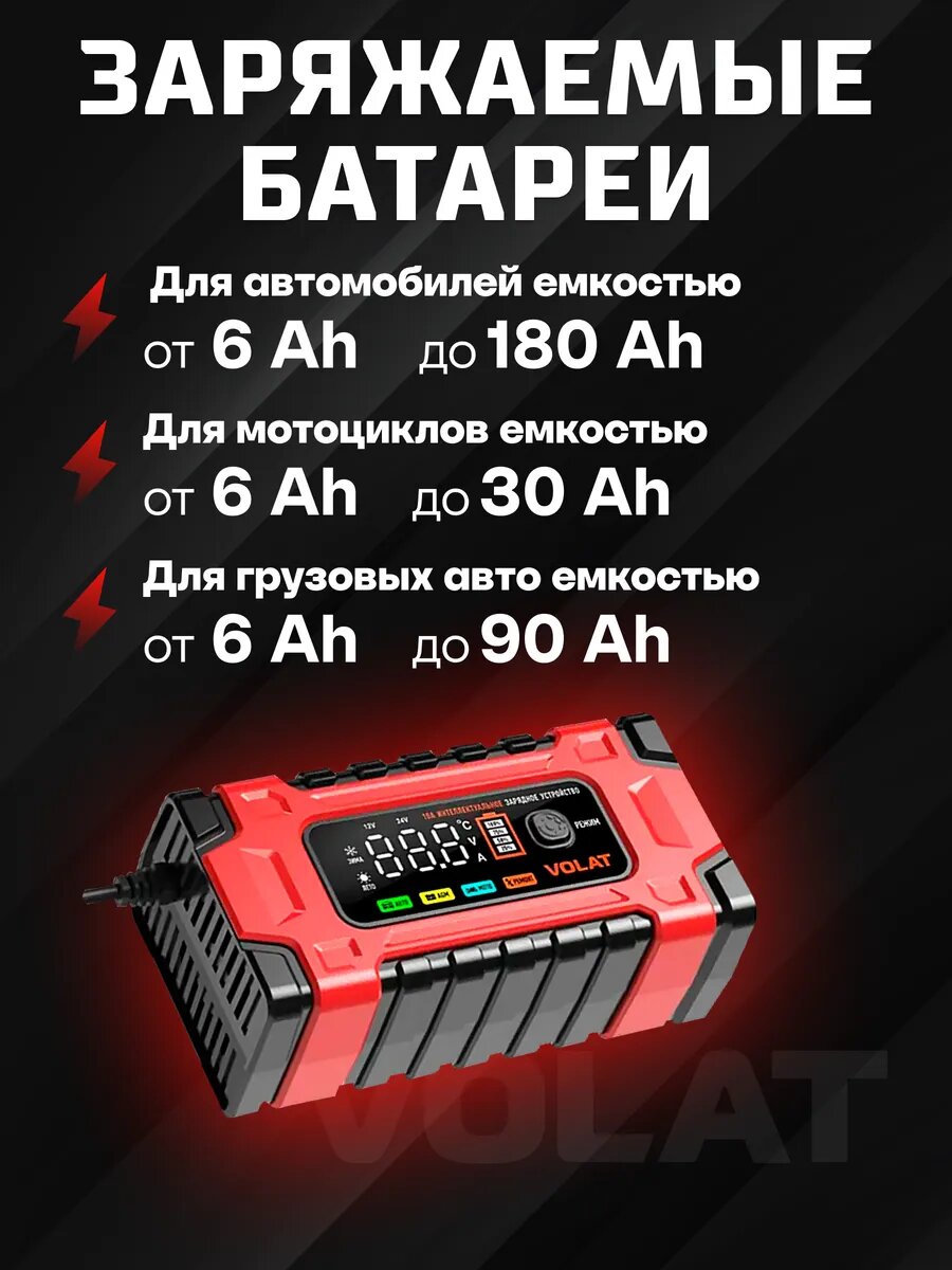Зарядное устройство VOLAT VT-BC122410E 12/24V 10A (AGM, GEL, WET): сравнение цен, характеристики, фото, актуальное наличие и цены.