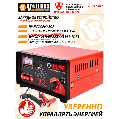 Зарядное устройство VOLLRUS 15А-D (для АКБ 20-80 А/ч), 6/12 Вольт, VLR15AD: сравнение цен, характеристики, фото, актуальное наличие и цены.
