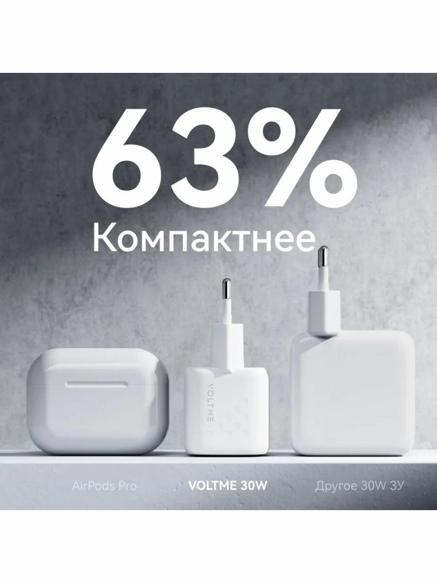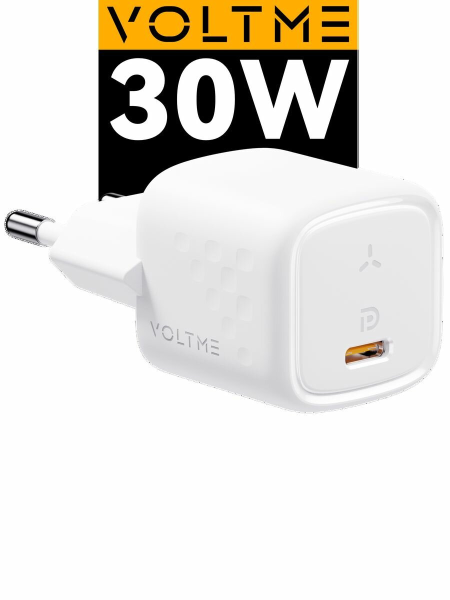 VOLTME Revo 30 C Mini Hi-Tech - универсальное мощное зарядное устройство премиум качества для смартфонов, мобильных телефонов, планшетов, ноутбуков и других умных электронных устройств с портом тайп си. На 63% компактнее стандартного 30W ЗУ благодаря производству по технологии GaN 3 поколения.