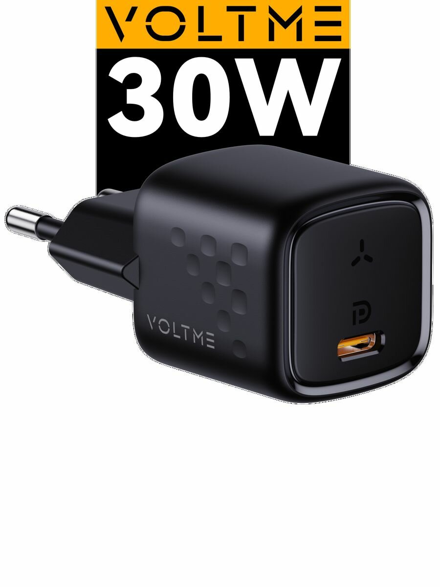 VOLTME Revo 30 C Mini Hi-Tech - универсальное мощное зарядное устройство премиум качества для смартфонов, мобильных телефонов, планшетов, ноутбуков и других умных электронных устройств с портом тайп си. На 63% компактнее стандартного 30W ЗУ благодаря производству по технологии GaN 3 поколения.
