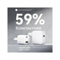 VOLTME Revo 30 CA - универсальное мощное зарядное устройство премиум качества для смартфонов, мобильных телефонов, планшетов, ноутбуков и других умных электронных устройств с портом тайп си. На 59% компактнее стандартного 30W ЗУ благодаря производству по технологии GaN 3 поколения.