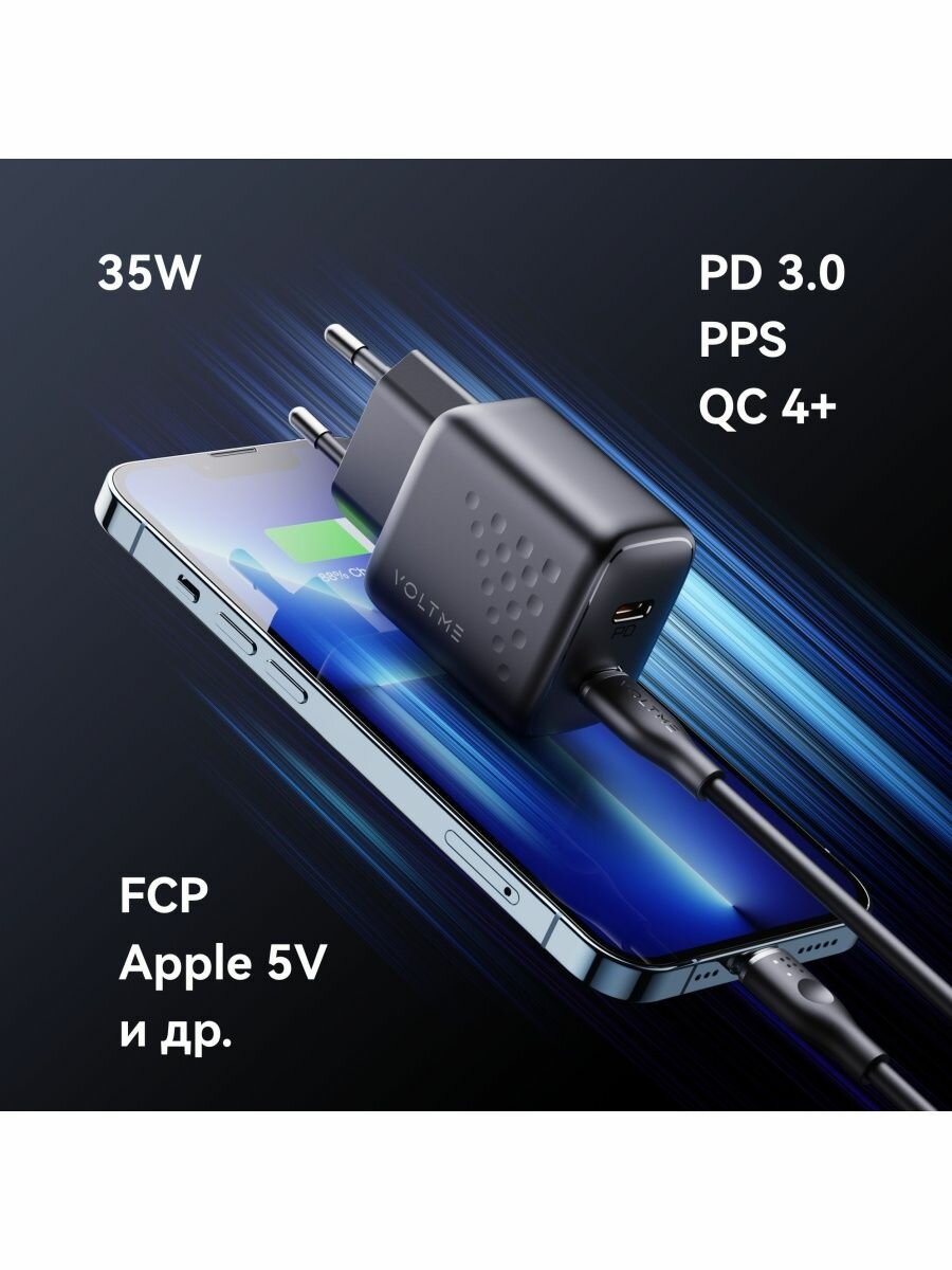 VOLTME Revo 35 - универсальное мощное зарядное устройство премиум качества для смартфонов, мобильных телефонов, планшетов, ноутбуков и других умных электронных устройств с портом тайп си. Изготовлен по технологии GaN третьего поколения.
