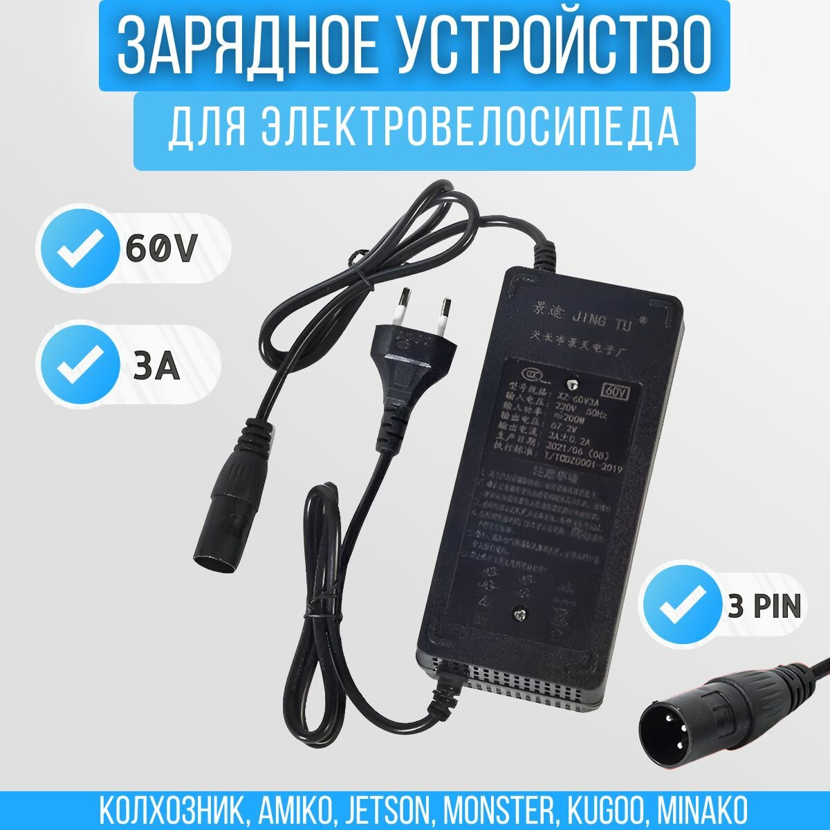 Купить Зарядное устройство (зарядка) для аккумулятора электровелосипеда 60V 3A с доставкой по всей России. Зарядное устройство (зарядка) для аккумулятора электровелосипеда 60V 3A: сравнение цен, характеристики, фото, актуальное наличие и цены.