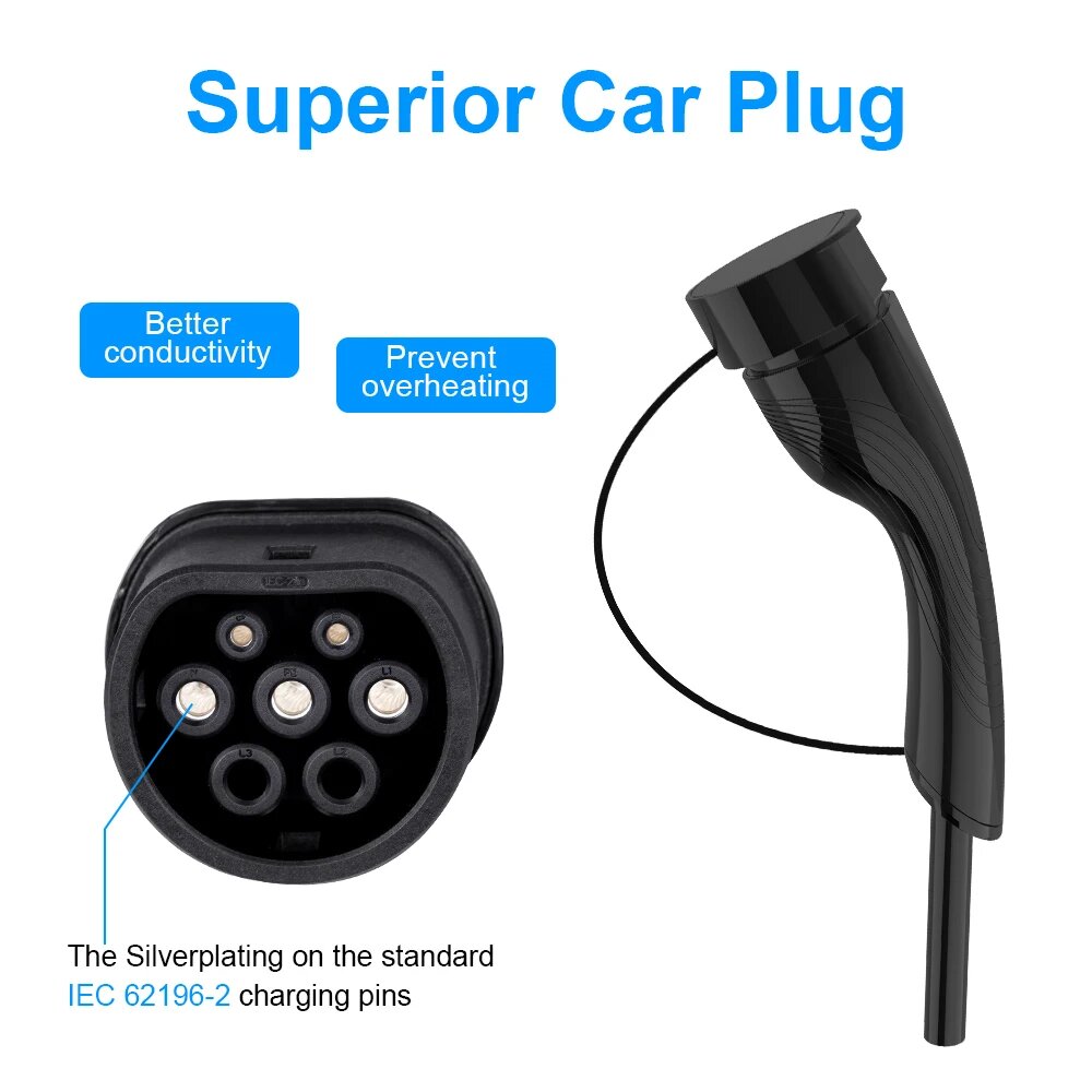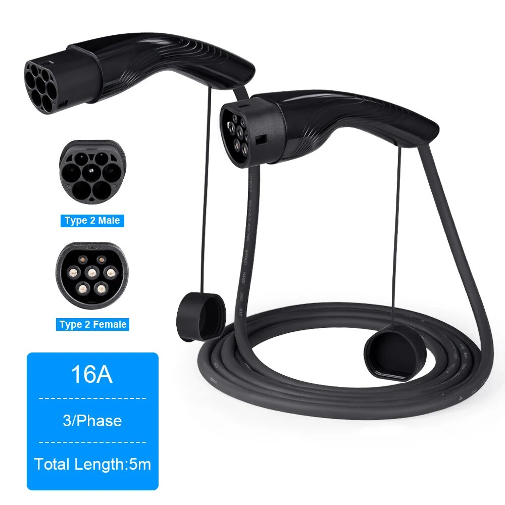 Зарядный кабель IPENGEN для электромобилей 16 А, кВт/11 кВт, шнур для электромобиля 5 м, тип 2, IEC62196, общественная зарядная станция переменного тока, штекер-гнездо, 11KW Black