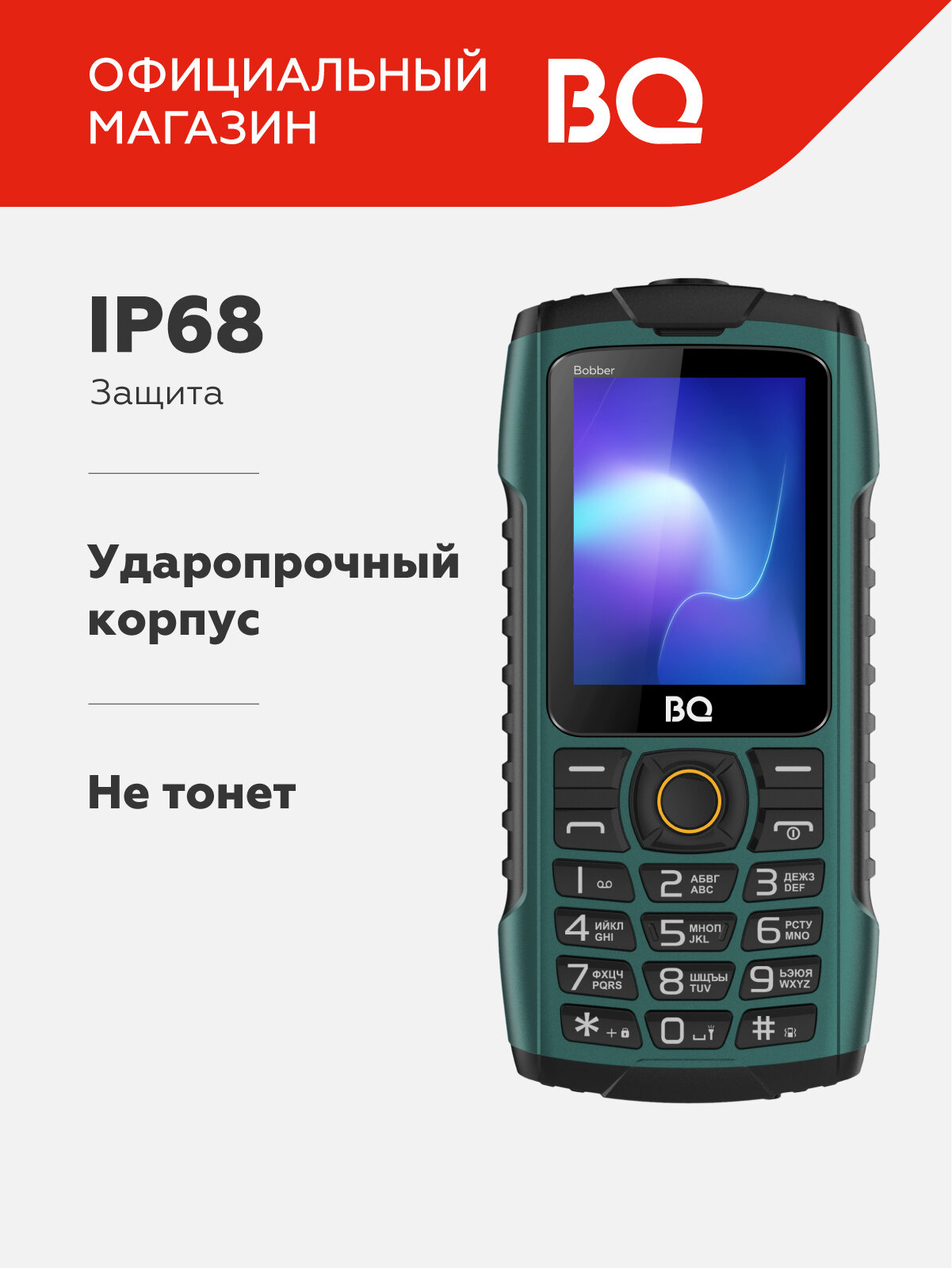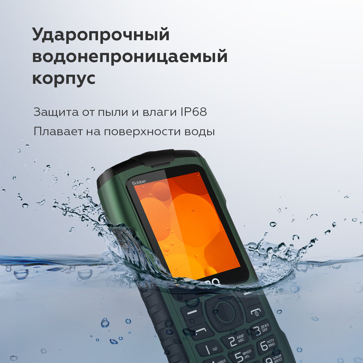 Купить Защищенный кнопочный мобильный телефон с 2-мя СИМ-картами BQ 2439 Bobber Green / IP68 с доставкой по всей России.