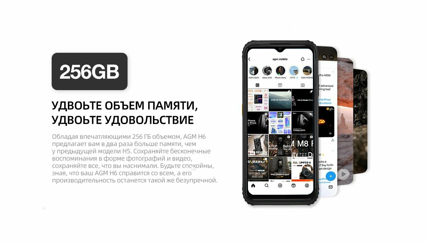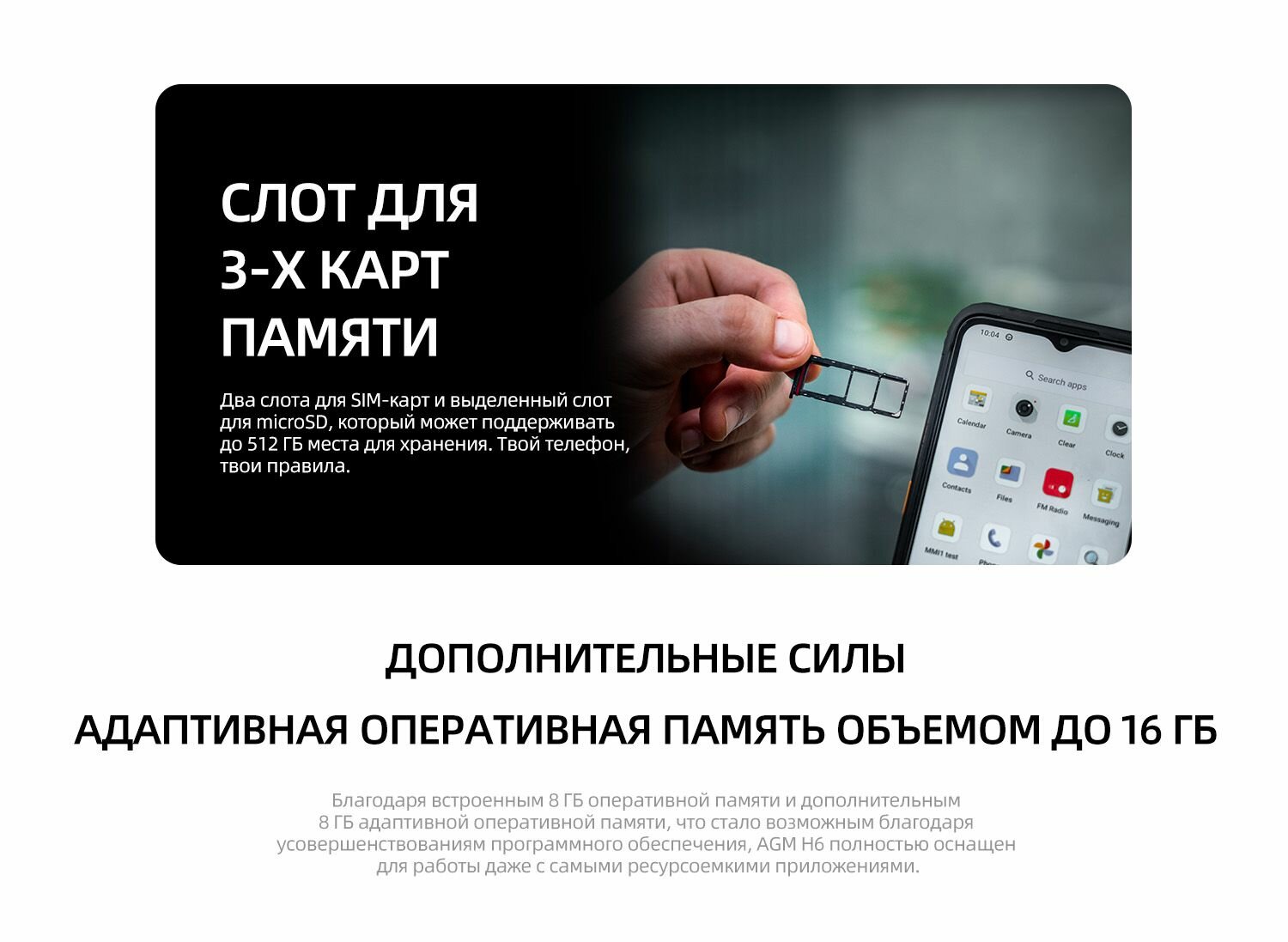 | Заводская комплектация | Смартфон АГМ Н6. Сетевое зарядное устройство для быстрой зарядки. Соединительный кабель USB Type-C. Инструкция на русском языке для AGM H6. Гарантийный талон. Подарочная коробка. |