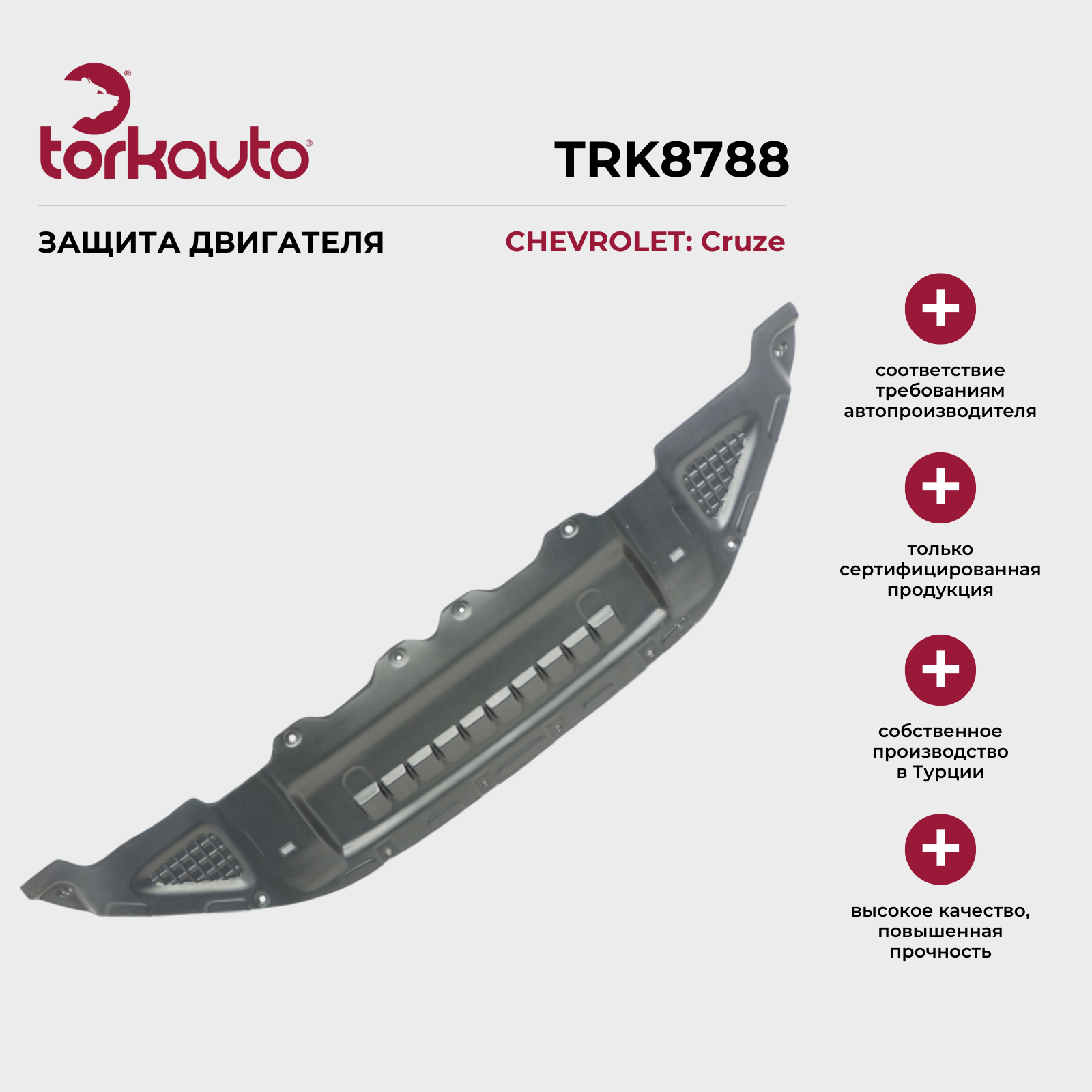 TORKAVTO — турецкий бренд автозапчастей, присутствующий на рынке России и СНГ с 2011 года. Защиты двигателя (Пыльник двигателя) под брендом TORKAVTO производятся на заводах в городе Бурса, Турция, специализирующихся на выпуске комплектующих для конвейерного производства ведущих автомобильных марок.