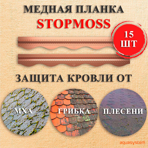 Защита гибкой черепицы от мха медная планка StopMoss Aquasystem (уп. 15 шт.): сравнение цен, характеристики, фото, актуальное наличие и цены.