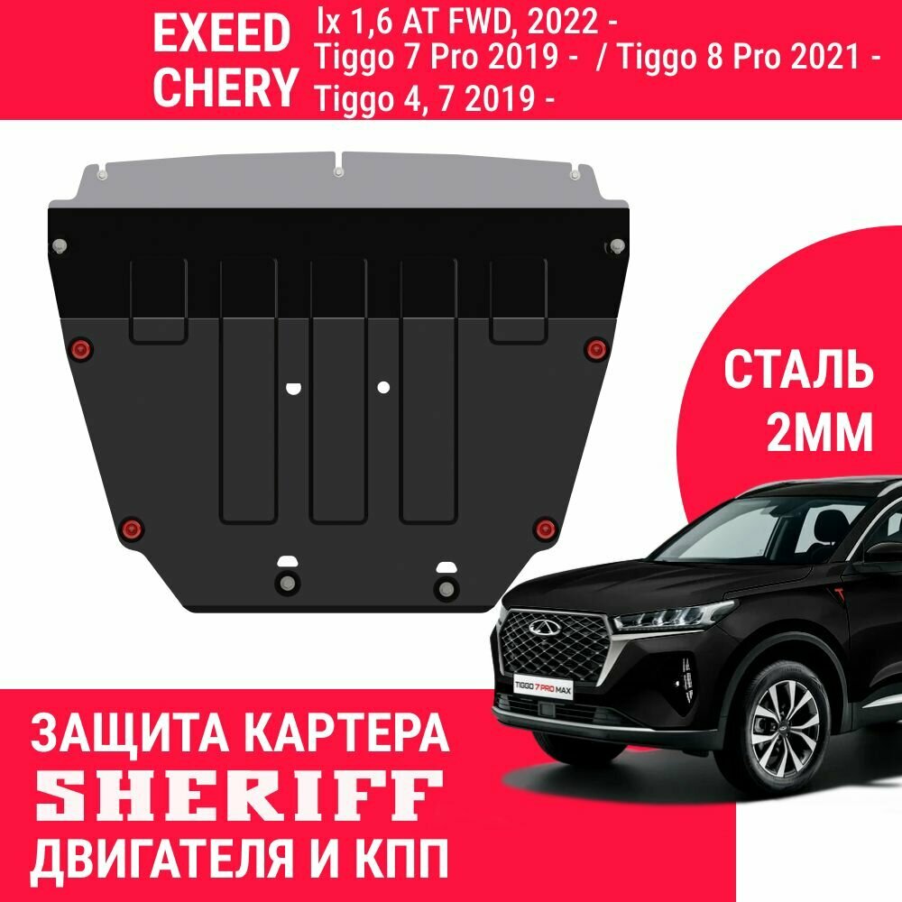 Защита картера и КПП CHERY Tiggo 4 2019-/Tiggo 7 PRO 2019-/Tiggo 7 2019-/Tiggo 8 Pro 2021-/EXEED LX 2022-; 2,0 мм (Sheriff): сравнение цен, характеристики, фото, актуальное наличие и цены.