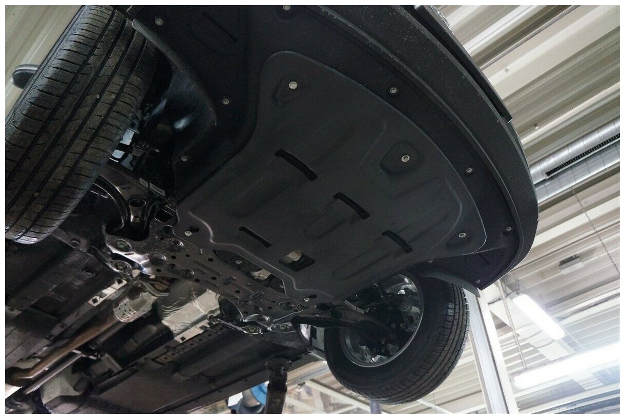 Описание Защита картера и КПП АВС-Дизайн для Hyundai Tucson кроссовер ( V - 1,6; 2,0 2WD/4WD АКПП/МКПП 2015-н. в./Kia Sportage кроссовер ( V - 2,0; 2,4) 2WD/4WD АКПП/МКПП 2016-н. в, композит 8 мм, крепеж в комплекте, 10.20k Защиты картера из композитного материала имеют многослойную структуру, в её состав входит армирующий непрерывный наполнитель с равномерно распределенными волокнистыми, дисперсно-уплотенными и слоистыми элементами и синтетический полимер. Армирующие волокна состоят из цельного стекловолокна, связующий все слои материал - эпоксивинилэфирная смола. Удельная прочность защиты из композита в 3,5 раз больше, чем у металлической. Равномерное распределение ударной нагрузки по точкам крепления защиты - в результате силовые части кузова автомобиля не деформируются, а вероятность повреждения самой защиты значительно снижается. Защиты изготавливаются с применением технологии 3D сканирования автомобиля. Таким образом форма защит соответствует форме каждой конкретной модели автомобиля. Благодаря этому защиты обладают дополнительными полезными свойствами: - Предотвращают попадание влаги и грязи в подкапотное пространство, за счет чего повышается срок службы электроники и другого оборудования. - Воздухозаборники обеспечивают стабильный температурный режим под защитой. - Форма защит сохраняет у автомобиля клиренс, а также предохраняет элементы крепления от повреждений. - При лобовом столкновении, композитная защита лопается и не мешает уходу двигателя вниз, по заранее просчитанной траектории. В защите картера отсутствуют отверстия для слива масла по некоторым причинам: - Они уменьшают прочность защиты и ухудшают ее характеристики, так как большие отверстия ослабляют всю конструкцию. - Процедура ТО включает в себя не только замену масла, но и контроль двигателя и коробки на предмет герметичности, поэтому снятие защиты при прохождении ТО неизбежно.