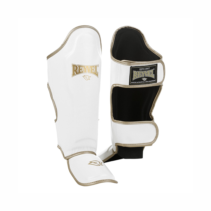 Защита на голень Reyvel МТ (Муай Тай). Спроектирована специально для этого вида единоборств. Оптимальная форма обеспечивает максимальную защиту по всей площади между ударной поверхностью и голенью и снижает риск получения травм ног во время тренировок и спаррингов. Дополнительную защиту обеспечивает специальное утолщение в районе большеберцовой кости и накладка на подъем стопы. Поверхность изготовлена из прочной высококачественной искусственной кожи, внутренний наполнитель пенополиуретан. Нескользящая подкладка позволяет бойцу чувствовать себя комфортно и уверенно работать в полную силу. Надежно фиксируется на ноге застежкой с липучкой.