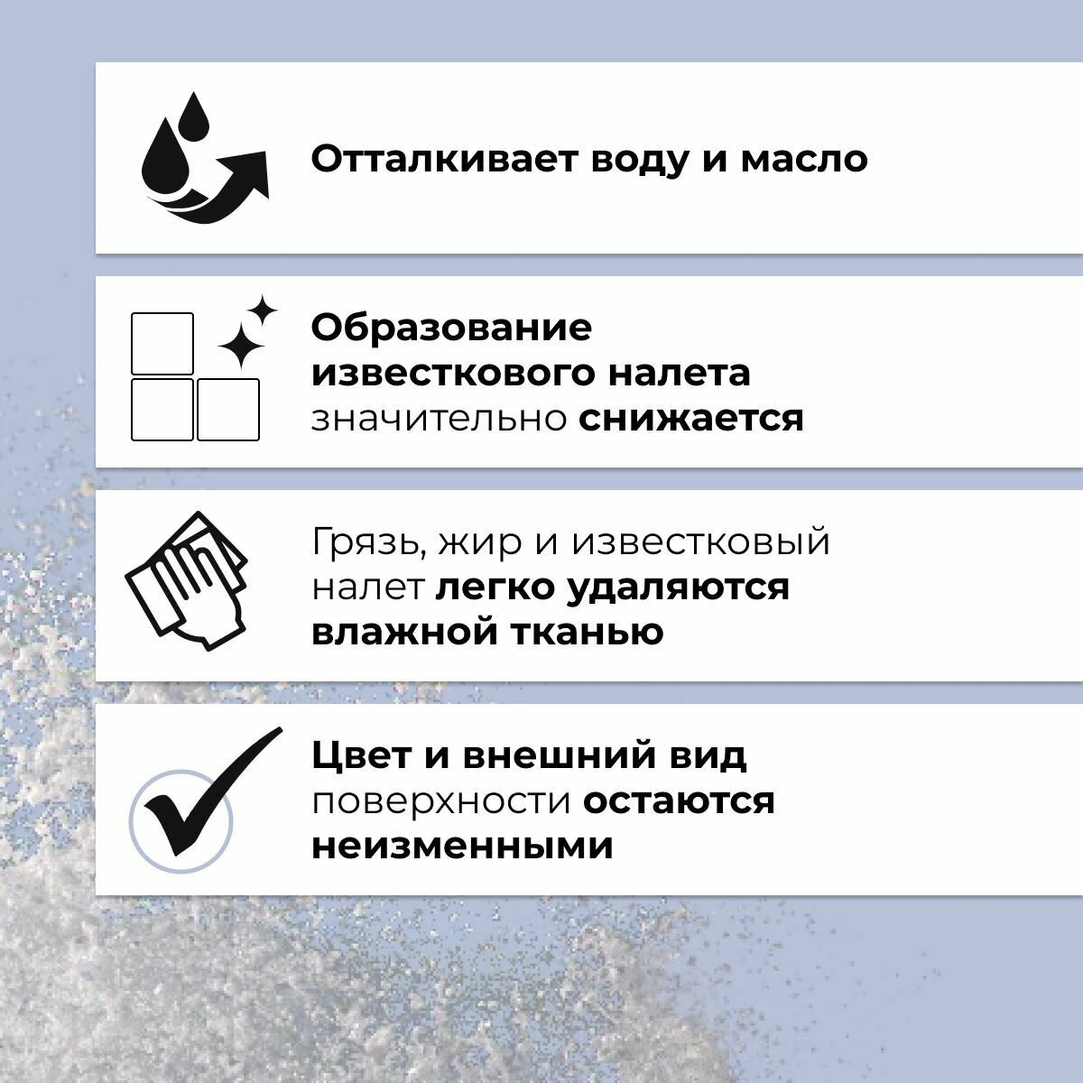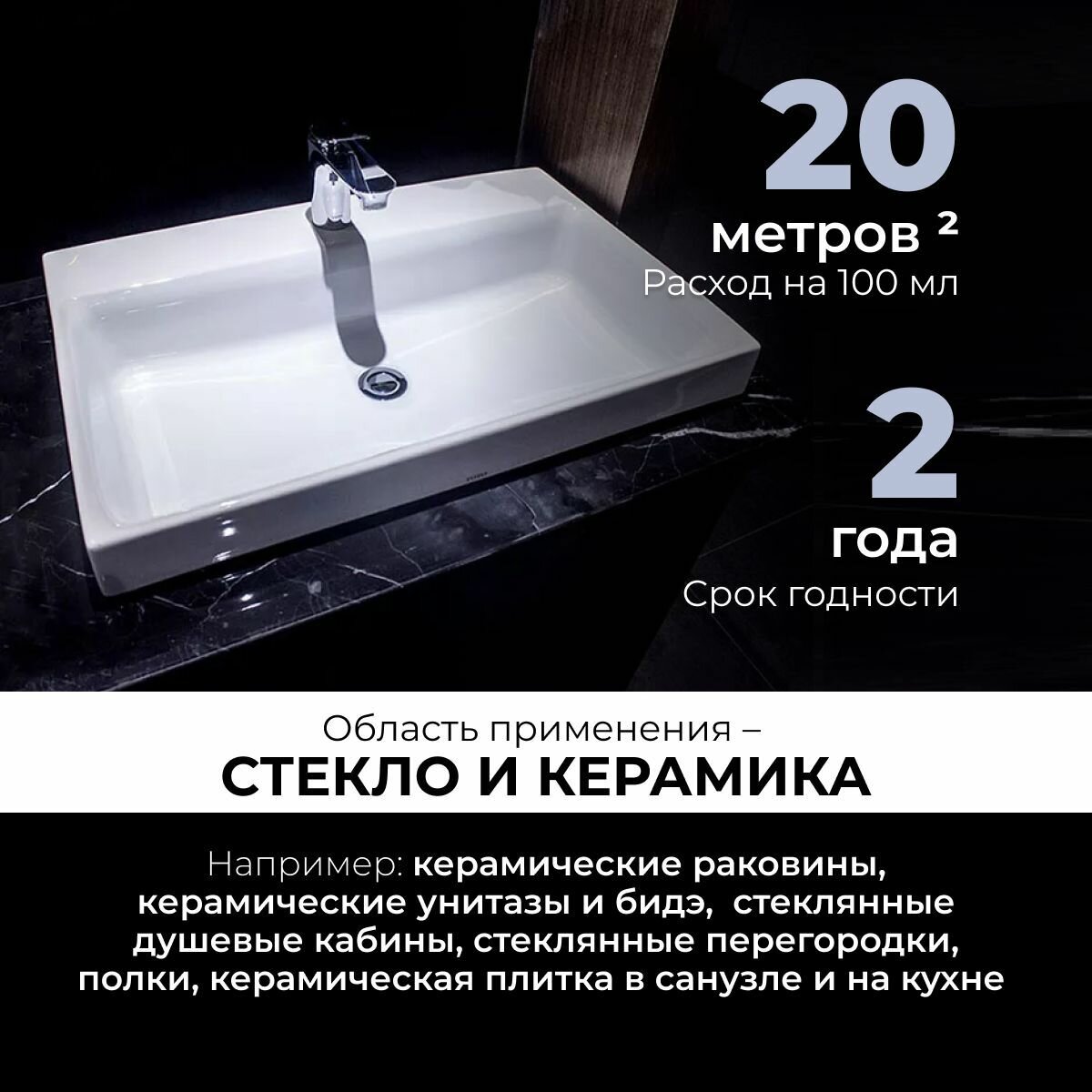 Это долговечное гидрофобное и олеофобное покрытие (водо - и грязеотталкивающее) для стеклянных и керамических поверхностей. Особую популярность данное средство приобрело у производителей стеклянных душевых кабин и стеклянных перегородок для дома.