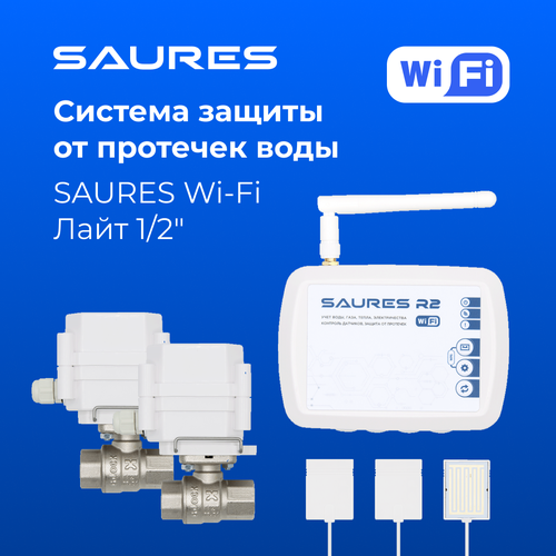 Умная система защиты от протечек воды SAURES Wi-Fi для установки на трубы с ДУ 1/2" (15мм). Объединяет функции современных систем защиты от протечек с сервисами для автоматизации и контроля расхода воды.