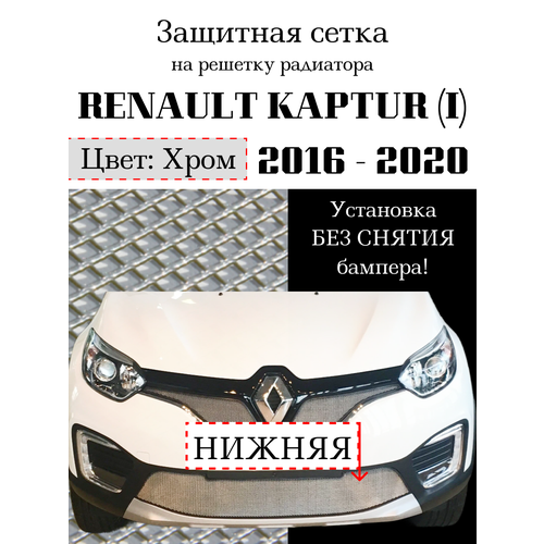 Купить Защита радиатора сетка (защитная сетка) Renault Kaptur 2016-2020 нижняя хромированная с доставкой по всей России.