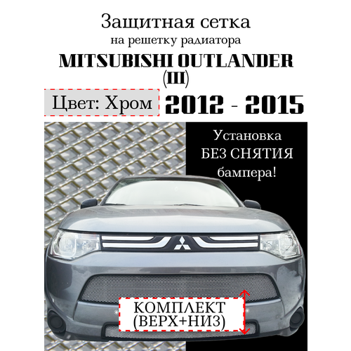 Купить Защита радиатора (защитная сетка) Mitsubishi Outlander III 2012-2015 (2 шт) хромированная с доставкой по всей России.