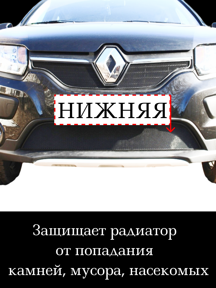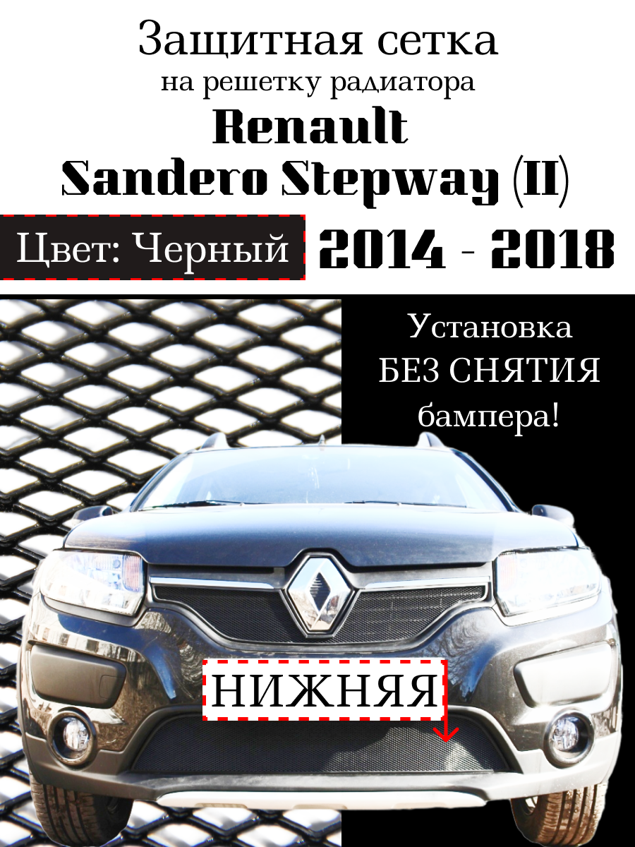 Защита радиатора (защитная сетка) Renault Sandero Stepway 2014-2018 черная нижняя: сравнение цен, характеристики, фото, актуальное наличие и цены.