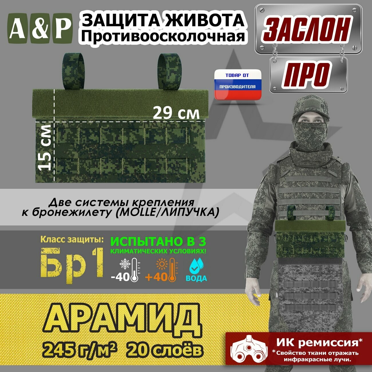 Купить Защита живота противоосколочная «Заслон про». Арамид (кевлар). Класс защиты Бр 1. Цвет: ЕМР (цифра). с доставкой по всей России.