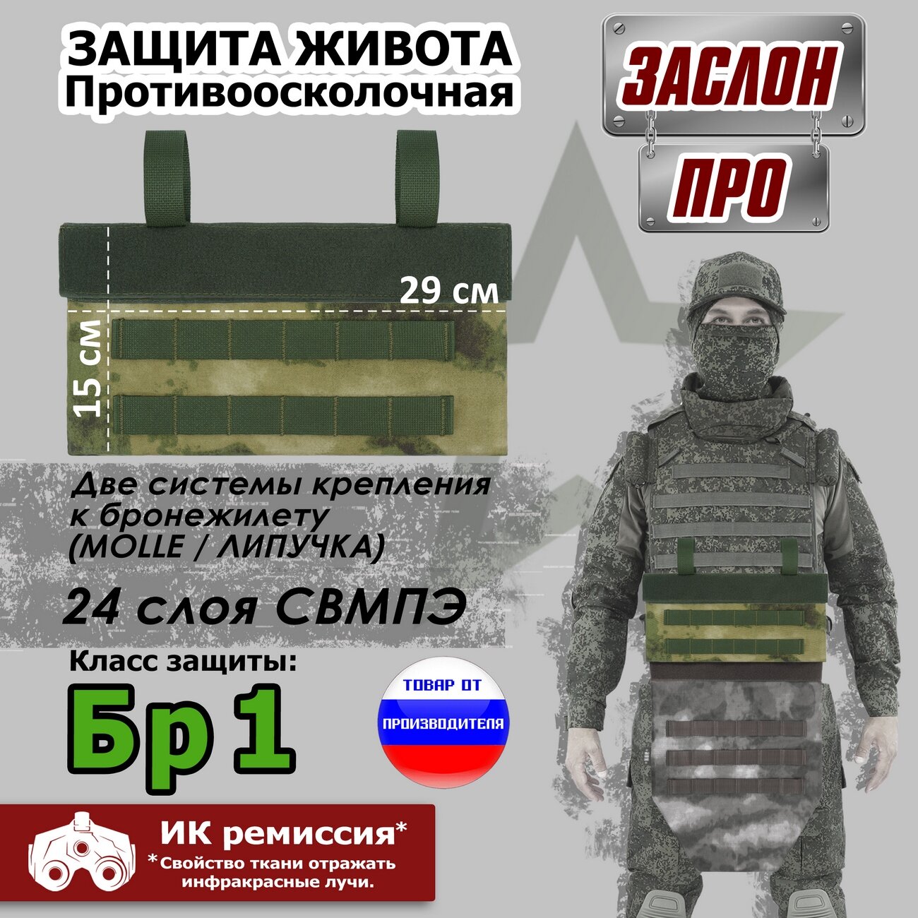 Купить Защита живота противоосколочная «Заслон ПРО». Класс защиты Бр 1. Цвет: мох зеленый. с доставкой по всей России.