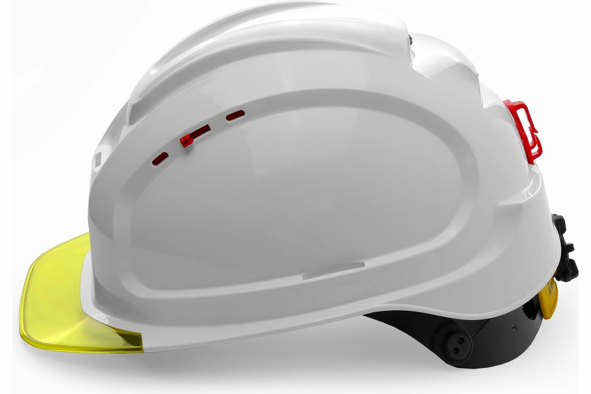 Особенностью данной модели является ее дизайн. Каска выполнена в белом цвете, что делает ее заметной на фоне рабочей одежды и позволяет быстро обнаружить ее в случае потери.