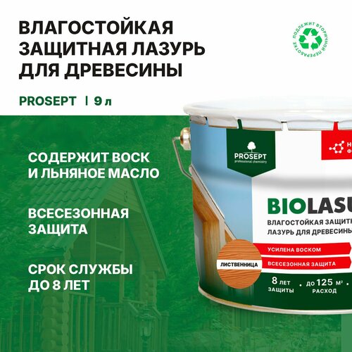 Защитная лазурь для древесины Prosept Bio Lasur (9л) лиственница: сравнение цен, характеристики, фото, актуальное наличие и цены.