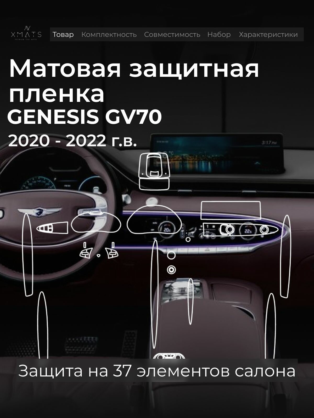Защитная матовая пленка в салон на Genesis GV70 с задним климат контролем / Пленка в салон на Генезис GV70: сравнение цен, характеристики, фото, актуальное наличие и цены.