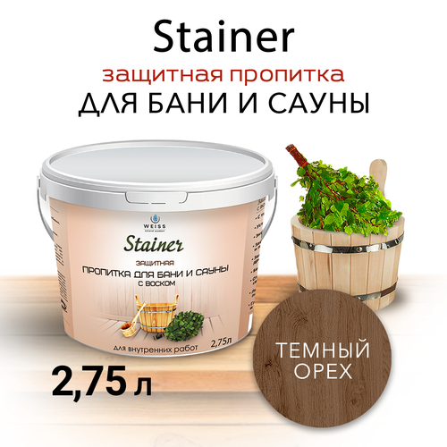 Купить Защитная пропитка для бани и сауны с воском Stainer, 2,75л Темный орех 030, защитная лазурь с доставкой по всей России.