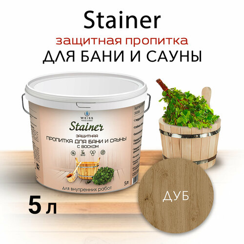 Купить Защитная пропитка для бани и сауны с воском Stainer, 10л Дуб 048, защитная лазурь с доставкой по всей России.