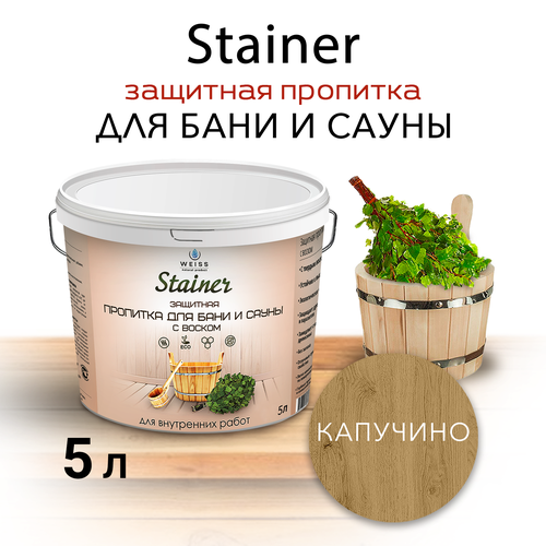 Защитная пропитка для бани и сауны с воском Stainer, 10л, защитная лазурь