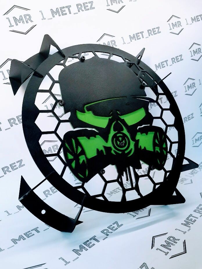 Купить Защитная сетка для сабвуфера 12, автогриль «Череп», 1metrez, черный-зеленый с доставкой по всей России.