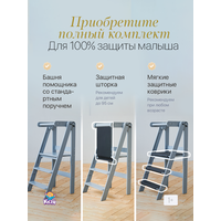 Защитная шторка для Башни помощника Друг Кузя – это безопасная для малышей перегородка, которая не допускает падений. Защитная шторка не входит в основной комплект, а приобретаются отдельно. С такой ширмой ребенок будет уверенно стоять на лесенке (примерно с 1 года) и сможет наблюдать, как готовит мама на кухне, а позже помогать по мере взросления и отказа от стульчика для кормления, самостоятельно мыть руки, посуду, чистить зубы, поливать цветы и совершать другие дела по дому. Благодаря шторке пребывание ребенка на башне будет полностью безопасным.