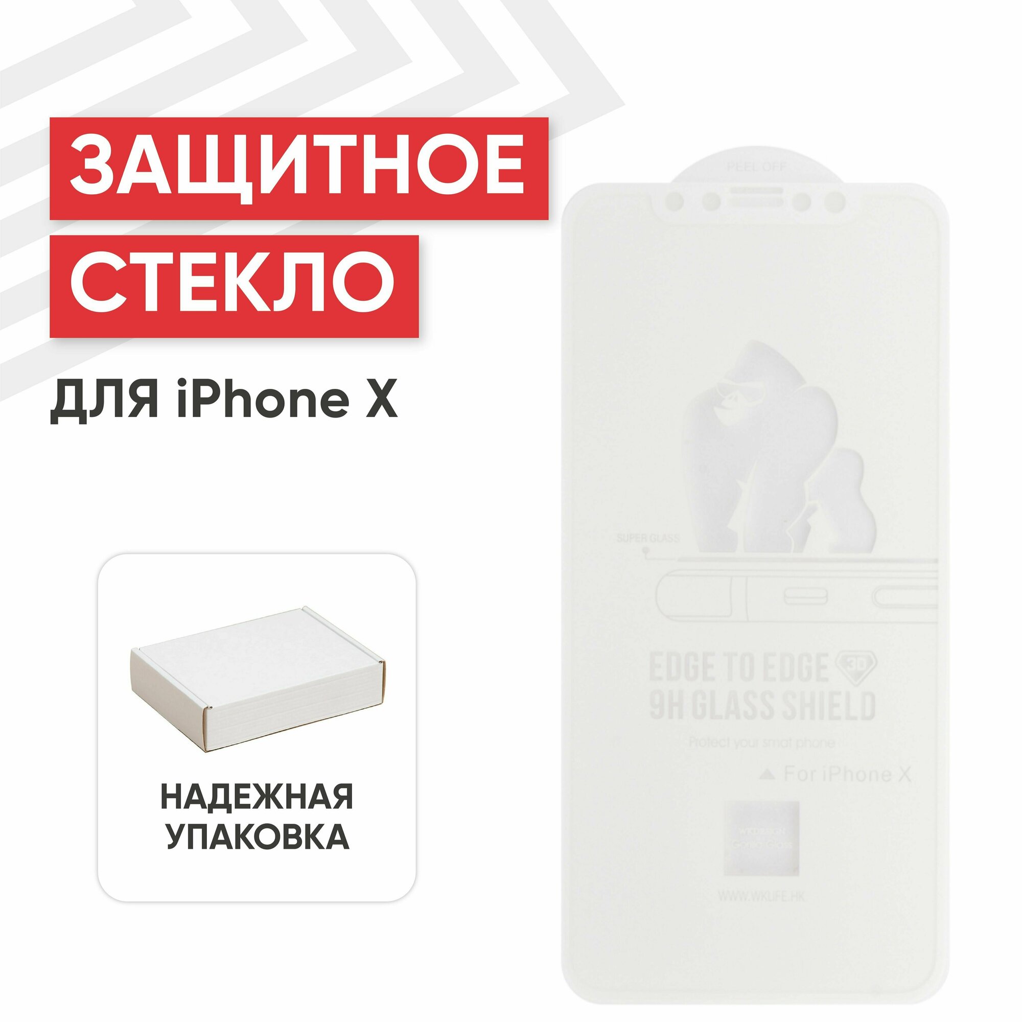 Купить Защитное стекло WK Kingkong F. C. C. E. T. G. для телефона Apple iPhone 11 Pro, X, XS, 3D, 0.22мм, 9H, с белой рамкой с доставкой по всей России.