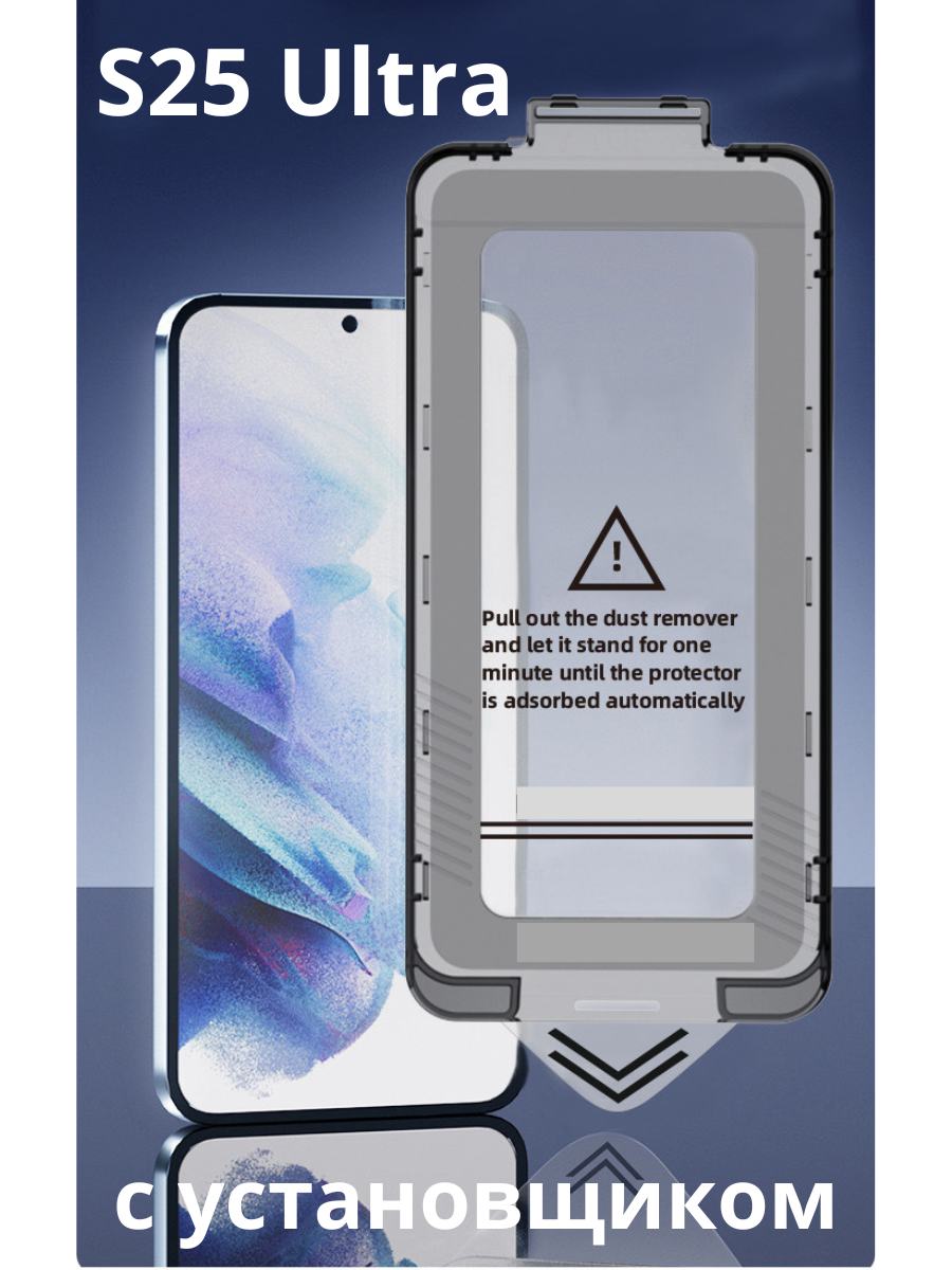 Купить Защитное стекло для Samsung Galaxy S25 Ultra, с автоустановщиком, олеофобное, с черной рамкой, без выреза под камеру с доставкой по всей России.