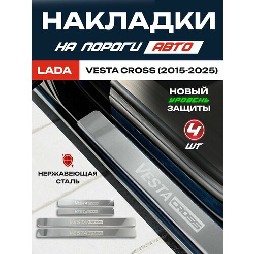 Устали от царапин и сколов на порогах вашей Лада Веста Кросс / Lada Vesta Cross? Представляем вам идеальное решение – накладки на пороги из нержавеющей стали! Этот внешний авто тюнинг (набор из 4 накладок - металл) не только защитит ваш автомобиль от повседневных механических повреждений, но и станет ярким аксессуаром.