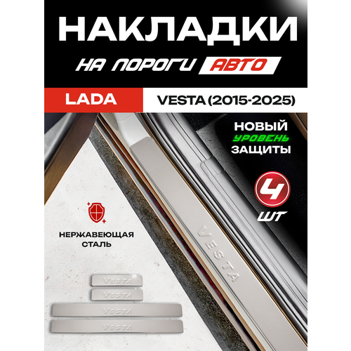Устали от царапин и сколов на порогах вашей Лада (ВАЗ) Веста / LADA (ВАЗ) Vesta? Накладки на пороги из нержавеющей стали - идеальное решение! Этот внешний авто тюнинг (набор из 4 накладок - металл) не только защитит ваш автомобиль от повседневных механических повреждений, но и станет ярким аксессуаром.